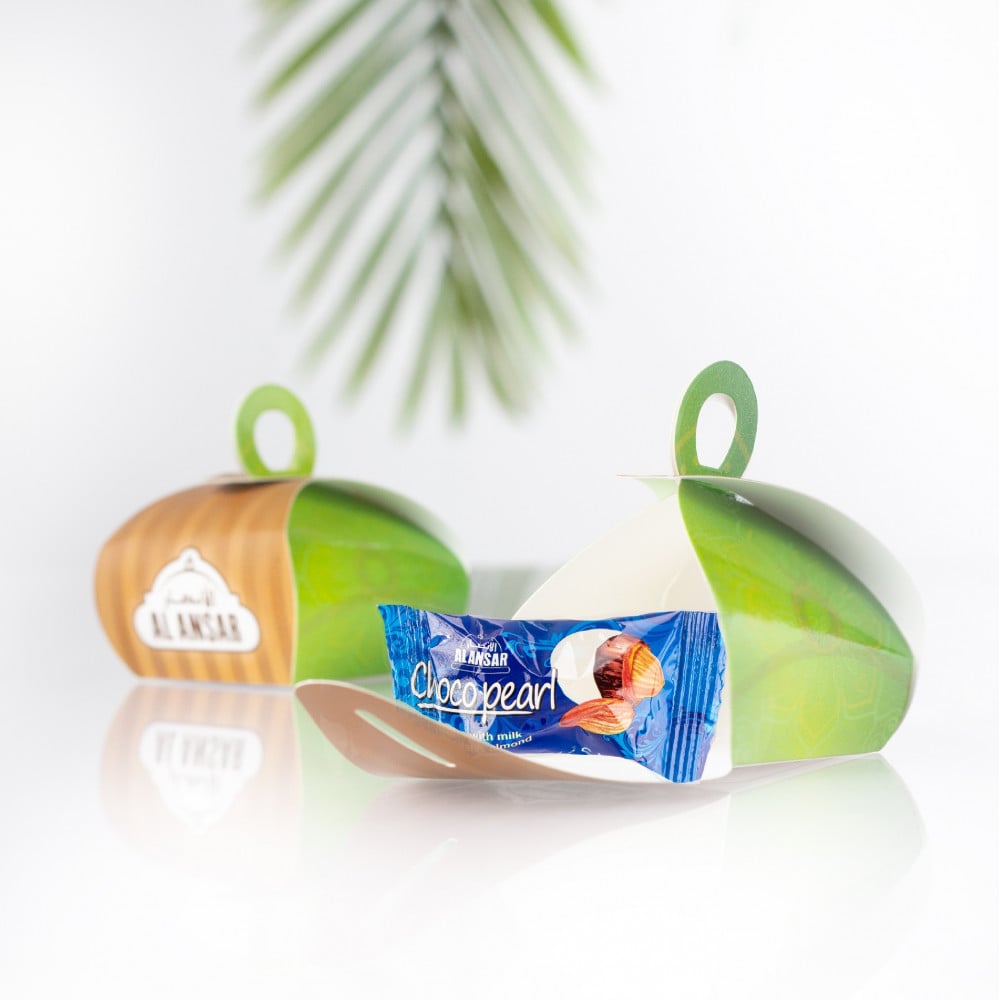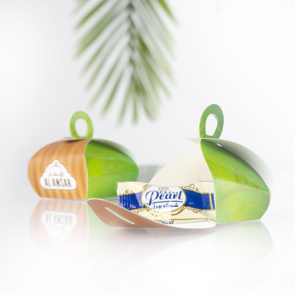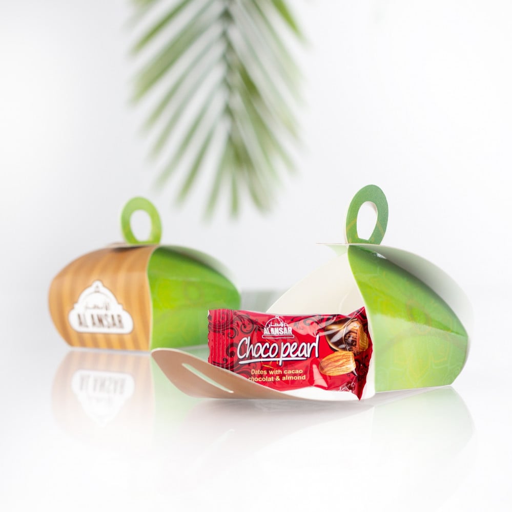 - شوكوبيرل (تمر محشي باللوز ومغطى بالشوكولا البيضاء أو البنية)